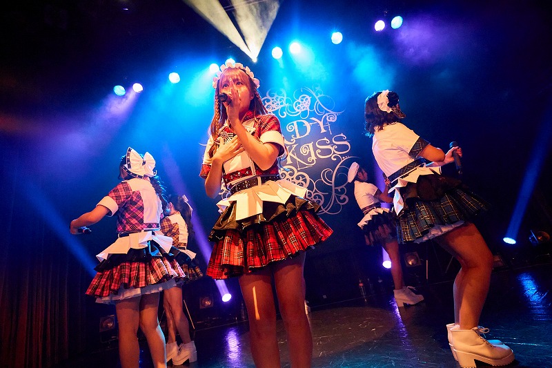 お馴染みのメンバーコールを組み入れたSEが流れだすや、フロア中から熱い声が張り上がる。ライブは、グループ名を冠した曲であり、READY TO KISSがメジャー最初のシングルとして発売した『READY TO KISS』からスタート。今宵の彼女たちは、とてもかわいいレディメイド姿。年齢はさておき、いつまでも恋に恋する乙女心を歌う彼女たちにとても似合う装いだ。メンバーらが愛らしい声で「君に キスしてもいいですか」とせまるたびに胸がキュンと鳴るのもお約束。いつの時代でも、どんな編成だろうと、いつだって彼女たちはハートをときめかせる魔法をかけていく。そこに、READY TO KISSの魅力を覚えずにいれない。