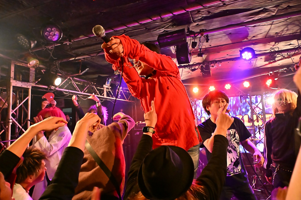 続く『STAY x 3』では、ベースにDEAN (AION)が参加。気持ちを熱く揺さぶるブラストビートと唸るベースの演奏に乗せ、それまでベースを演奏していたYUTAKA-ABEXも加わり、4人の歌い手が入り交じる形でセッション。勢いあふれる演奏を、気持ちをオラオラとした高ぶらせた4人の歌い手たちが、観客たちを煽るように「STAY STAY~」と歌い叫んでいた。ステージの上もフロアもぐちゃぐちゃになり、声を上げて混じり合うあの頃の景色が、そこには生まれていた。