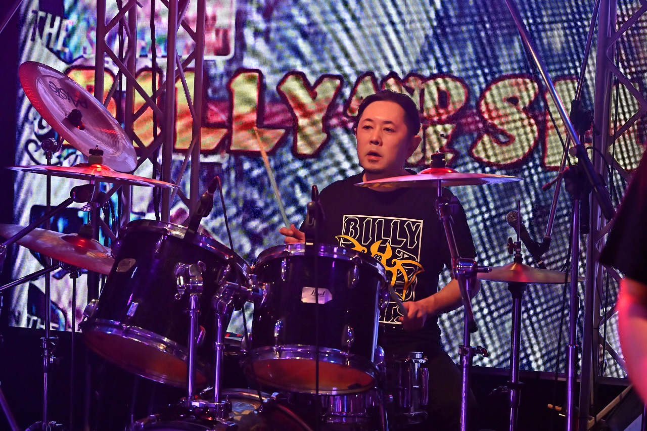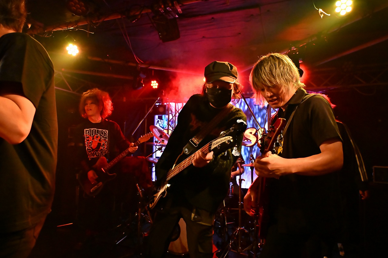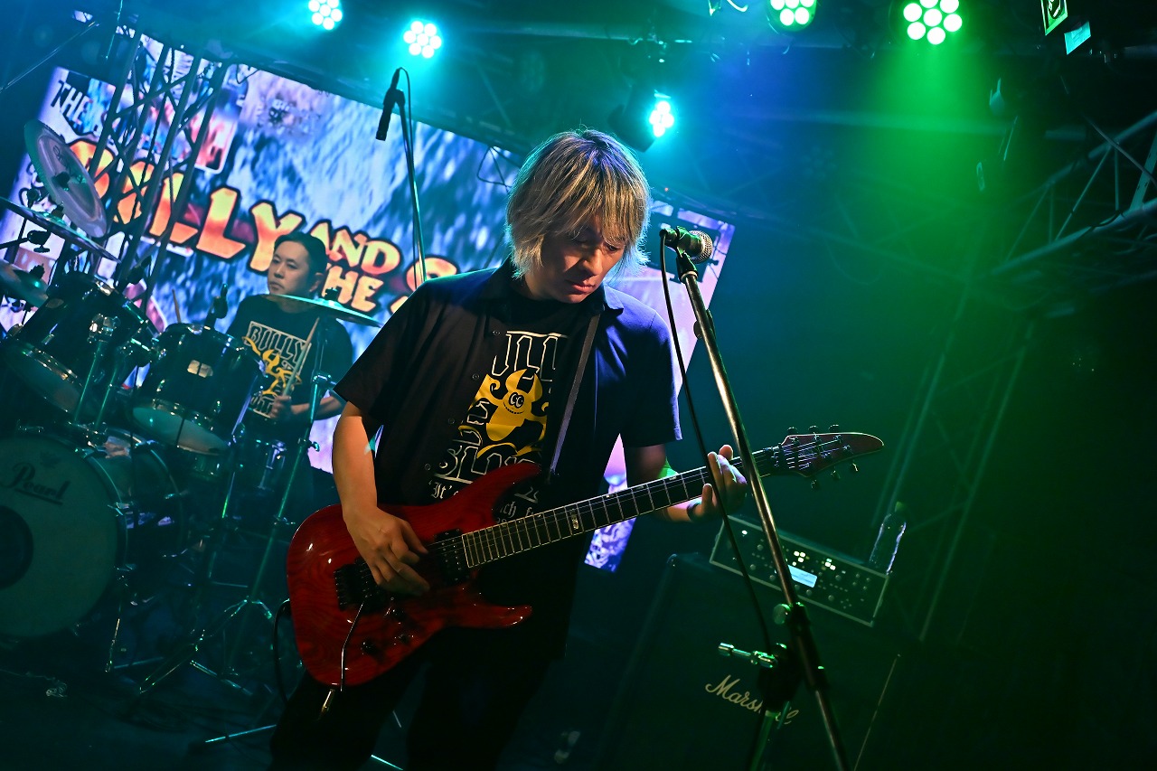 ここからは、さまざまなミュージシャンがBILLY AND THE SLUTSのライブに飛び入りで参加。『FEEL SO GOOD LUCK』では、関西FREE-WILL RECORDS FAMILYのLUCY(Red Tail Cat)とSHELLA(Amphibian)がヴォーカルで、MIZUKI(La mise a mourle)がギターで参加。打ち上げの席では見られても、ステージではけっして当時から見ることのなかった景色が目の前に広がっていた。この曲では、LUCYとSHELLAの2人が交互に歌い、SAMMYは煽りに専念。その後、自身も歌に参加するが、基本は、LUCYとSHELLAに歌を任せていた。たとえヴォーカルが変わろうと、一緒にシンガロングしたくなる往年の名曲の魅力や良さは、変わることなく輝いていた。