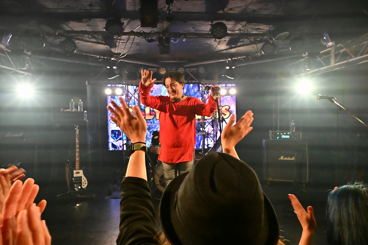 勢いを持って駆け続けた演奏からガラッと色を塗り替えるように、続いて演奏をしたのが、バレンタインの時期にピッタリの甘いバラードの『DISTANT VALENTINE』。愛しい人へ向けて思いを告白するように歌うSAMMY。還暦を前にして純愛を歌う男から感じたのは、貫祿よりも、寄り添い歌う優しい男の感謝と愛情に満ちた姿だった。そのうえで、軽快に跳ねた『EASY TRIPS』を歌い奏で、彼らは、観客たちの心をふたたびウキウキと弾ませていった。